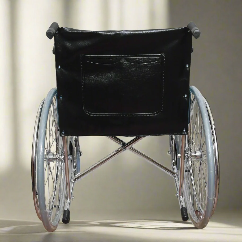 Manual operation: The wheelchair is self-propelled, with spoke rear wheels (23″ or 24″ inches) for the user to push.