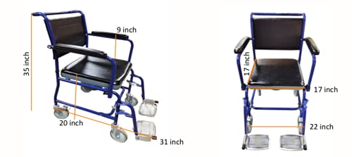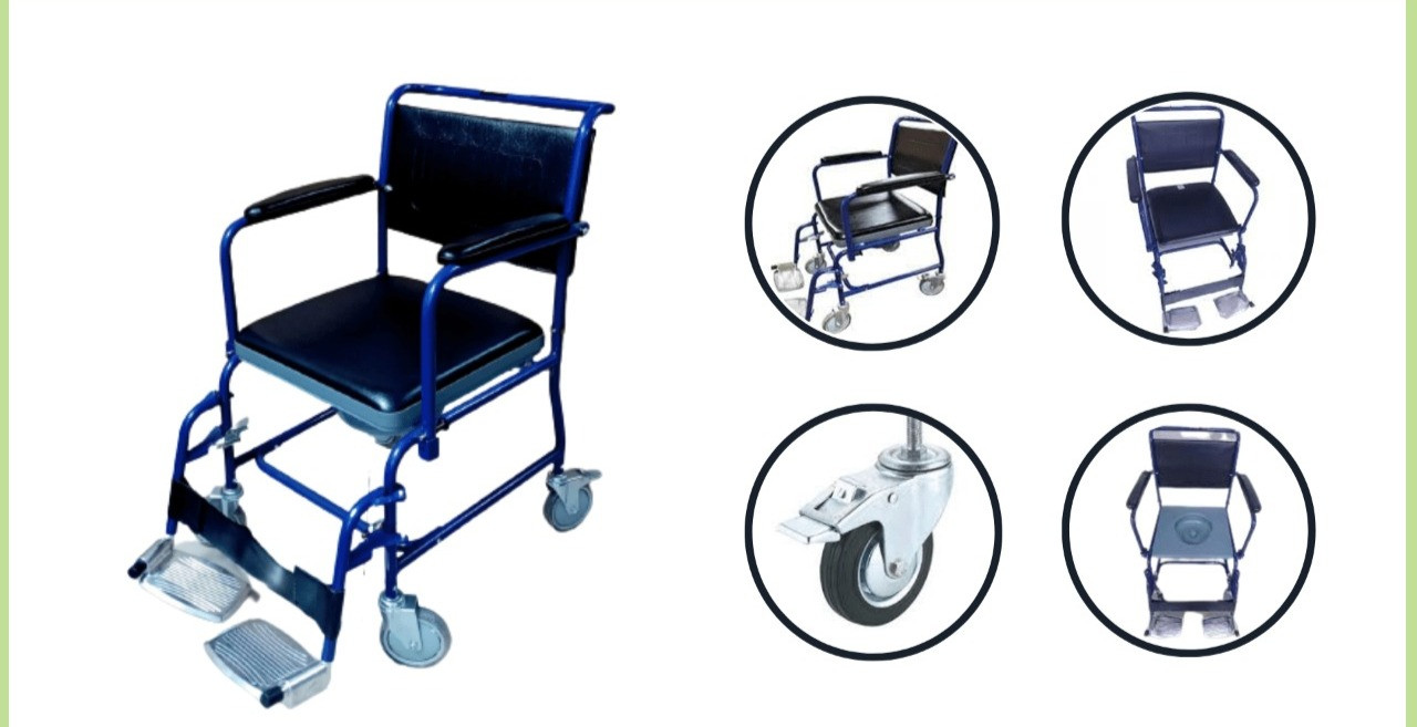 Multipurpose function: Serves as a wheeled shower chair, a commode, and a transfer wheelchair for indoor use.