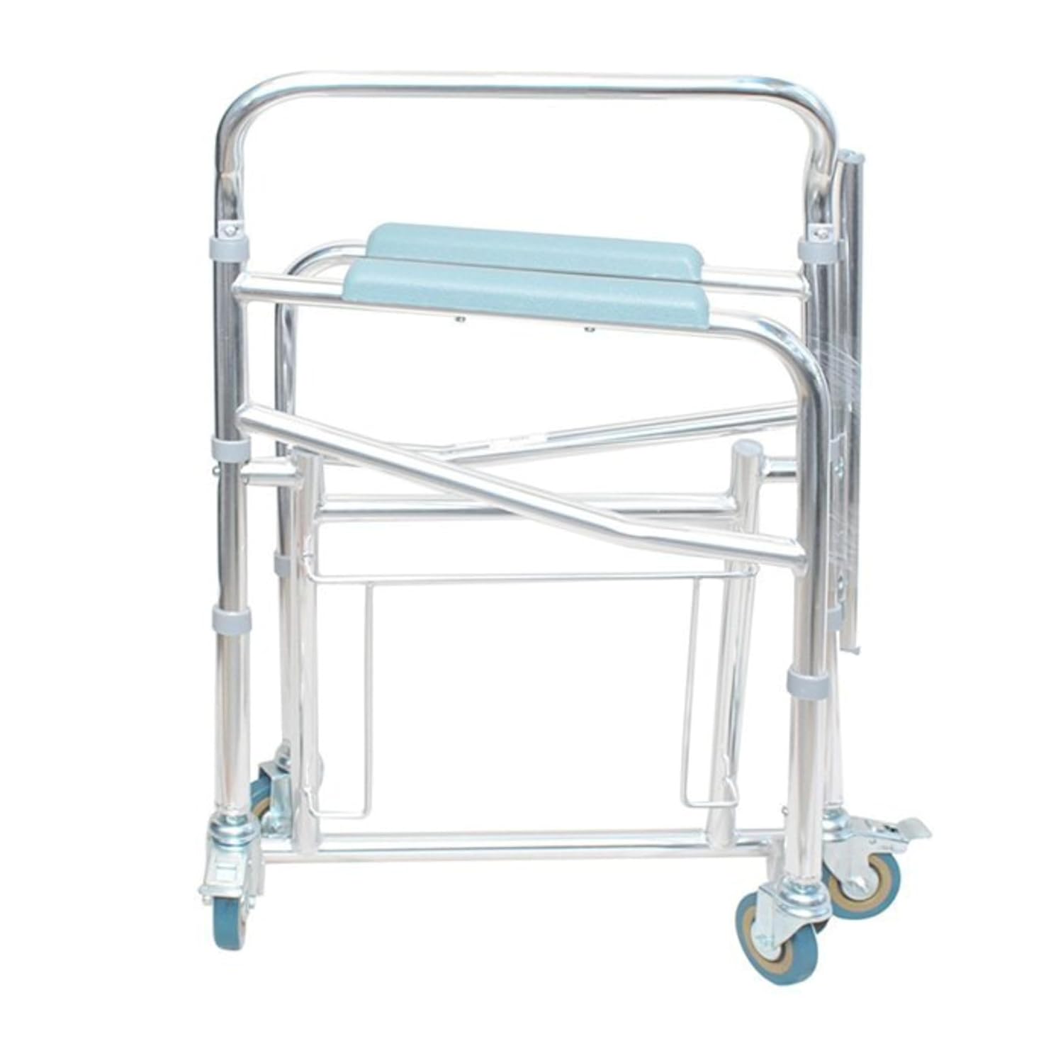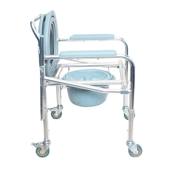 • Dual-purpose: It is both a commode chair with a removable pan and a mobile chair with wheels for easy transport.